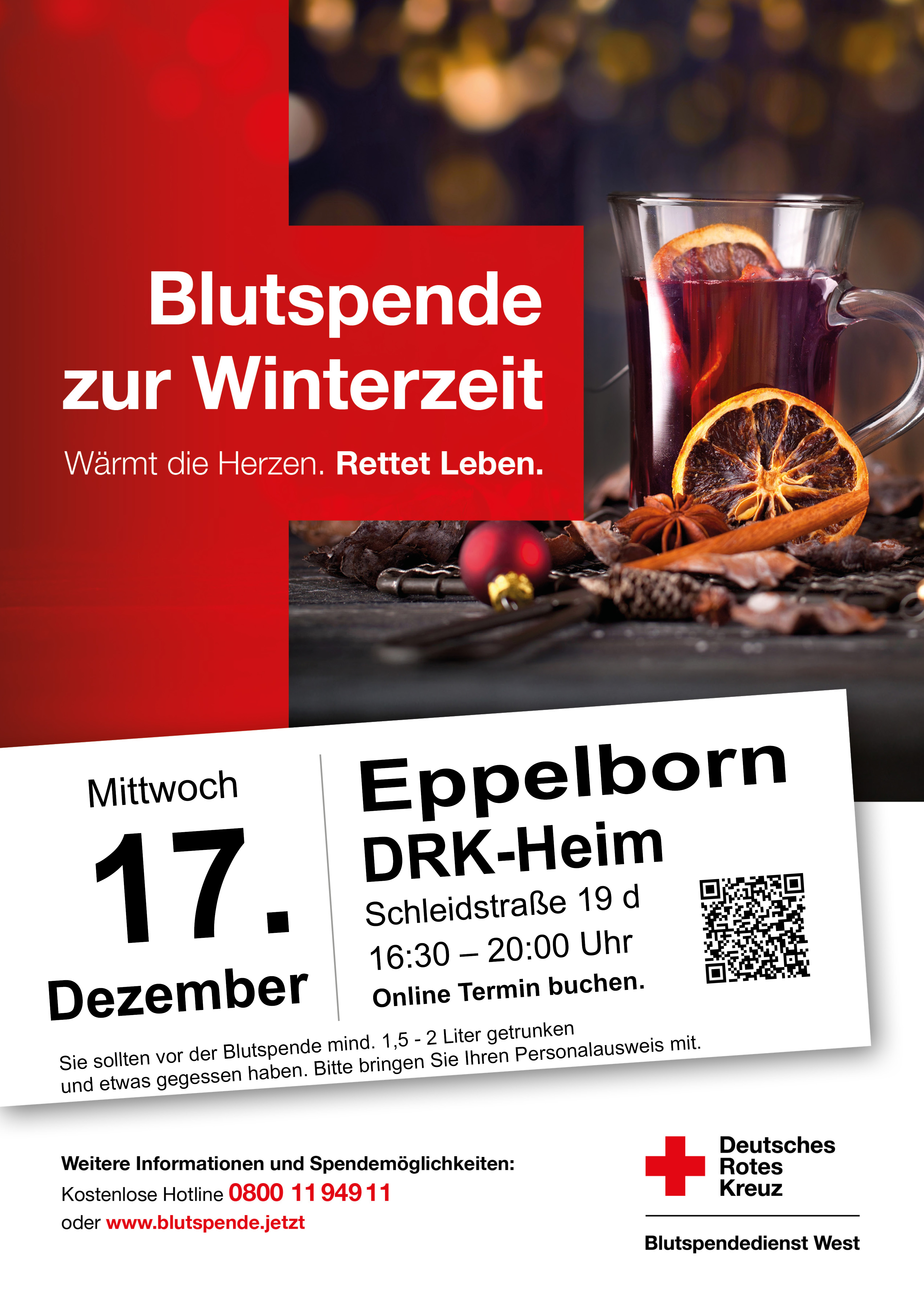 Nächste Blutspende am 9.7.2025 in Eppelborn!